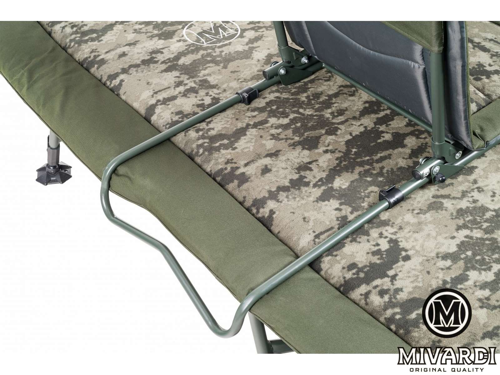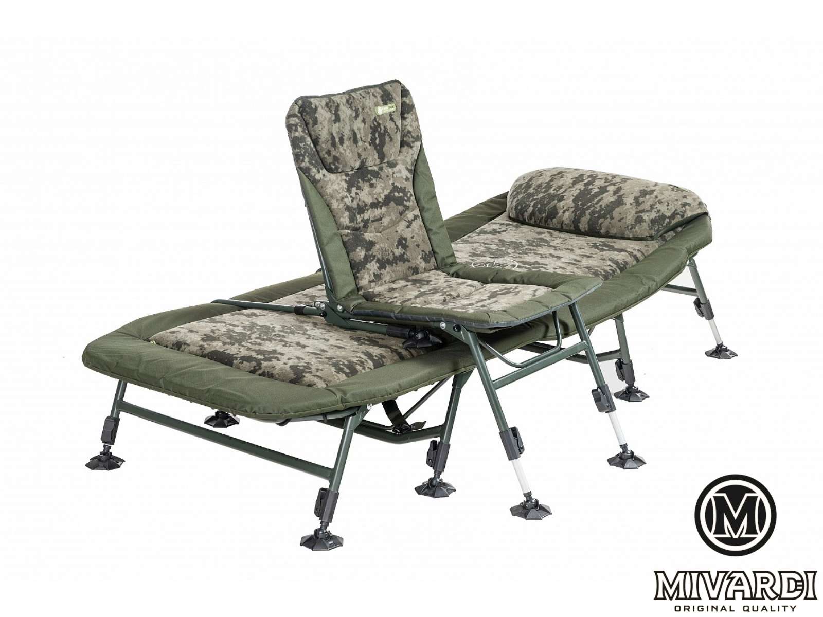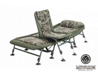 Цей стул унікальної конструкції дозволяє використовувати його як легкий і швидко укладається стул середнього розміру з чотирма телескопічними ножами. За раховані секунди його можна відрегулювати і розмістити над розкладкою зі спальним мішком. Задня частина каркаса спеціальної форми лежить на розкладному кріслі, що запобігає локальному пошкодженню наповнення спального місця або матраса розкладушки. Це крісло оснащене прочною набивкою і зручним флісовим покриттям унікального дизайну CamoCODE. Він оснащений самопід'ємними ножами і грязевими ножами оригінальної конструкції.