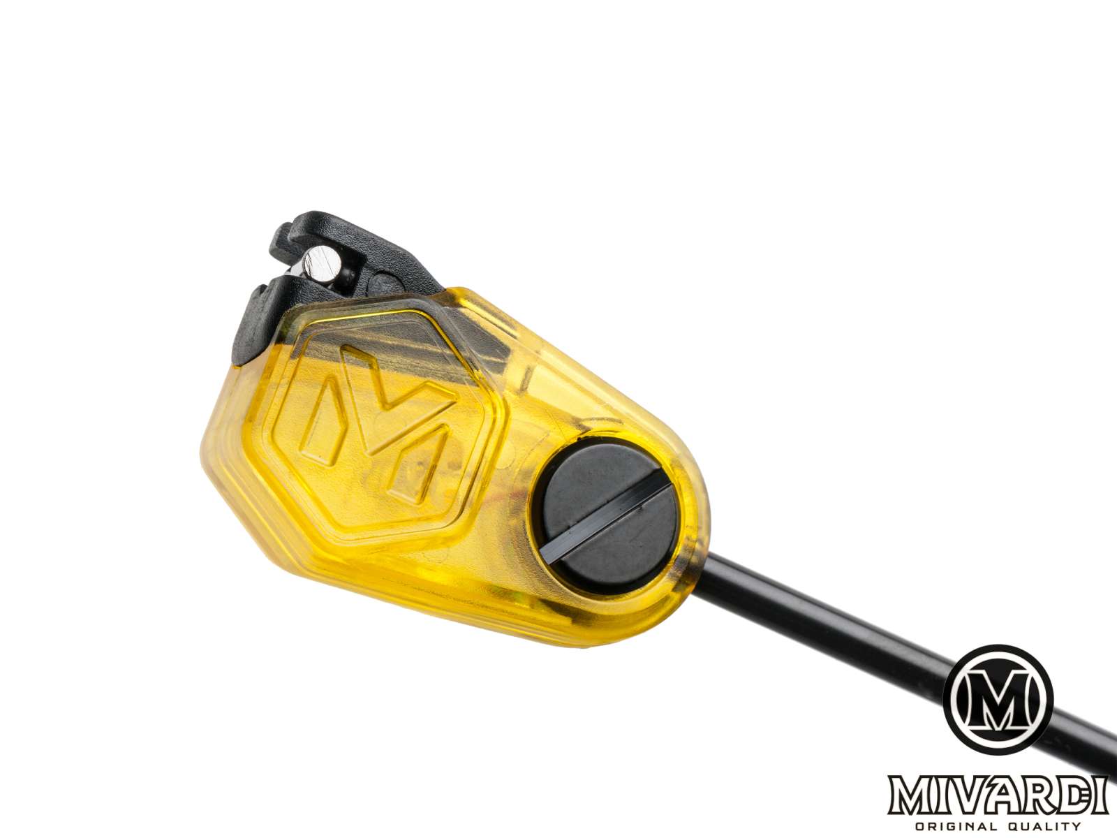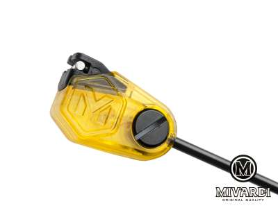 Індикатор клювання, повністю розроблений брендом Mivardi. Він живиться безпосередньо від сигналізаторів клювання. Його кристально чисте тіло підсвічується під часклювання. Дуже легка головка індикатора може бути значно зменшена за допомогою ковзної ваги, якщо необхідно. Надійна кліпса надійно утримує волосінь або плетінку незалежно від їх діаметра і ваги на головці індикатора. Однак це забезпечує безпечне вивільнення індикатора після підсікання. Після відпускання штанга фіксується в нижньому положенні, запобігаючи її удару по род поду або подальший вільний рух штанги.