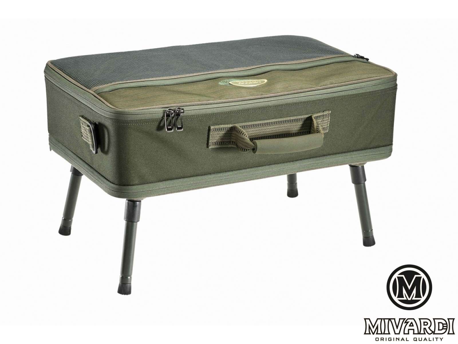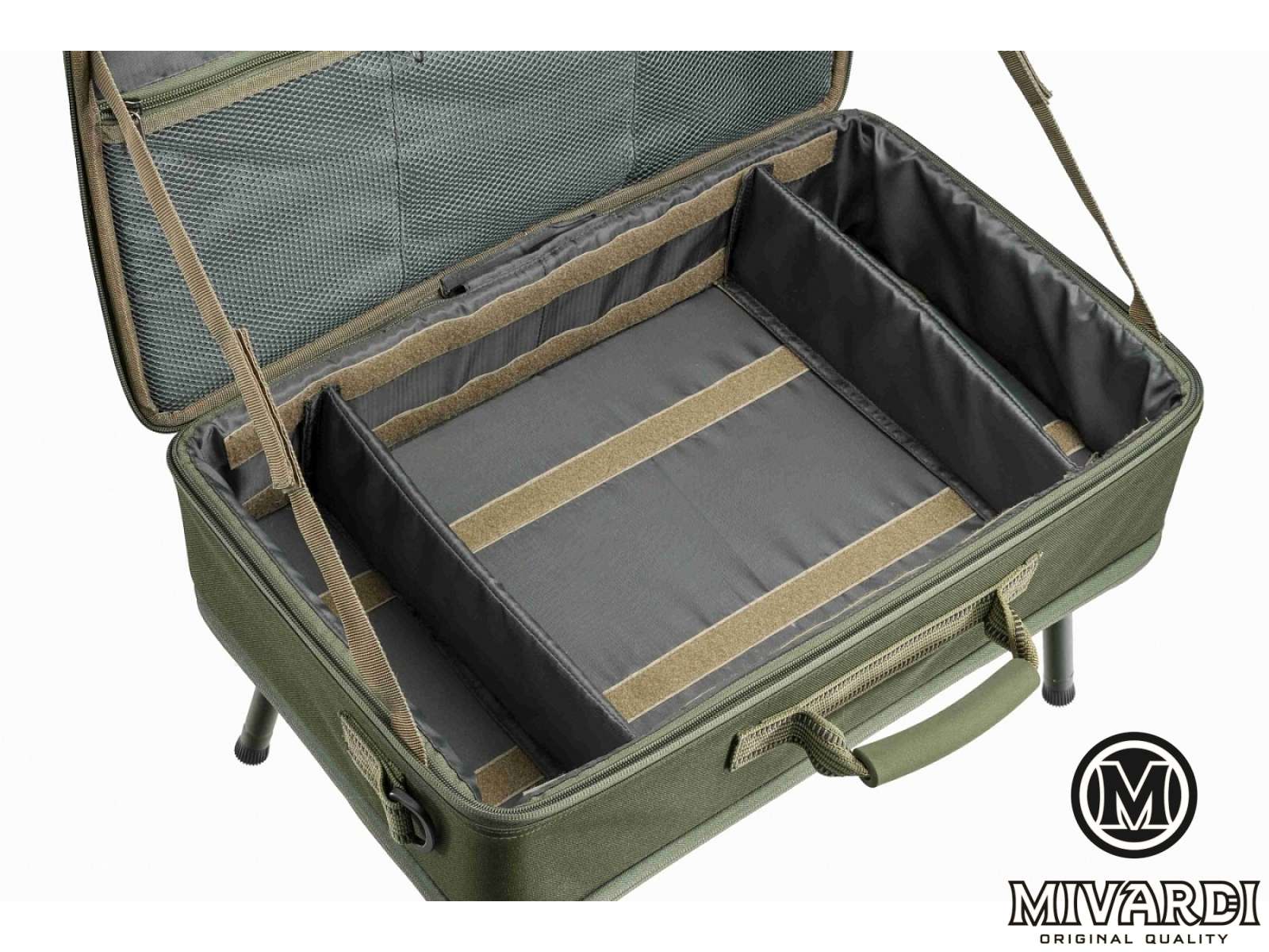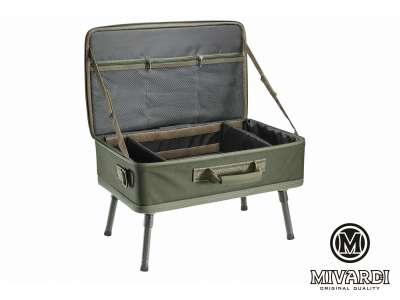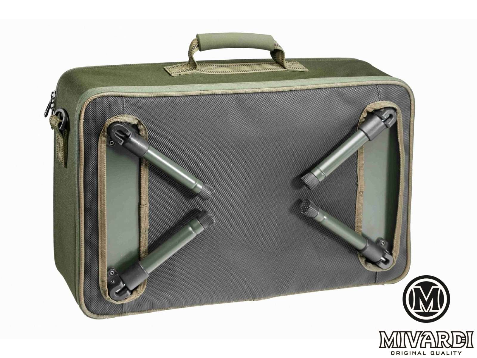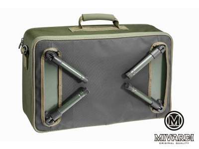 Чрезвычайно удобная, высококачественная комбинация аксессуаров и стола. Внутри вы найдете регулируемые разделители, надежно закрепленные липучкой, а внизу - полнофункциональный (и съемный) алюминиевый стол с четырьмя регулируемыми ножками. Либо используйте футляр с ножками, либо снимите стол и используйте самостоятельно. При необходимости к чехлу можно легко прикрепить универсальный наплечный ремень. Размер 53 х 34 х 15 см